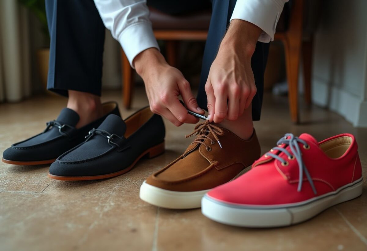 Pour ceux qui souhaitent ajouter une touche d’originalité, les chaussures de couleurs vives peuvent être une option intéressante. Elles doivent cependant être intégrées avec soin, en veillant à ce qu’elles complètent votre tenue sans la dominer.